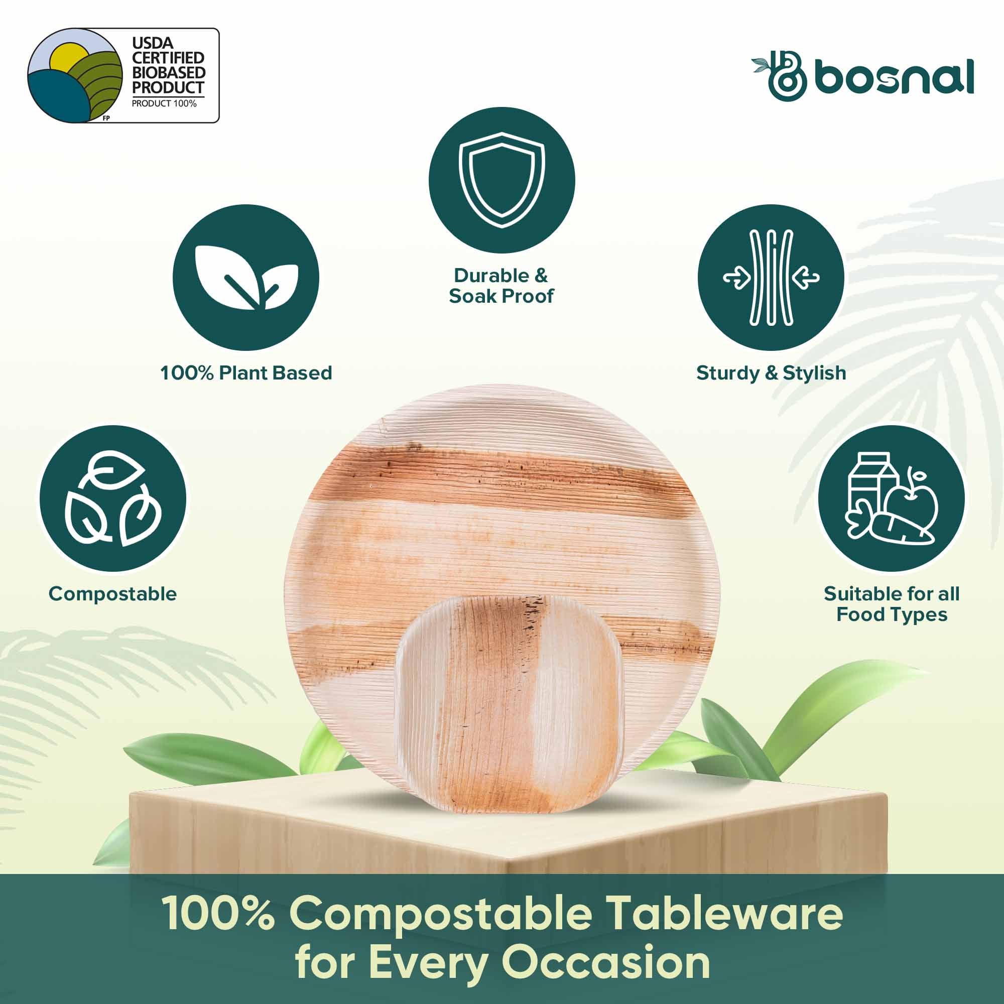 Palm Leaf Biodegradable Plates Combo – 50 pcs (25 x 9 inch Round + 25 x 4 inch Square) | Eco-Friendly, Compostable, Disposable Dinnerware for Parties, Weddings & Events