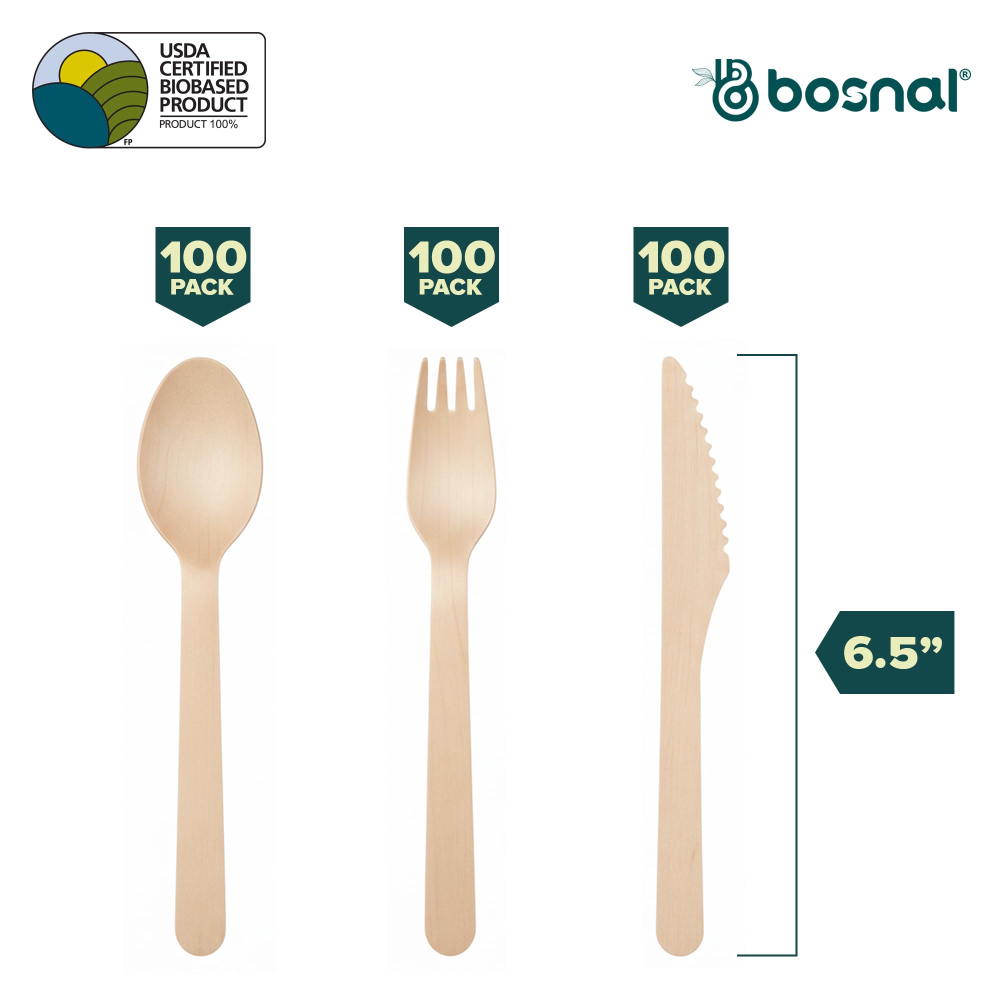 Material & Safety: Made from 100% natural smooth wood. This 300-piece wooden cutlery set includes 100 spoons, 100 forks and 100 knives. BPA-free, plastic-free, compostable and biodegradable - safe for everyday food use.