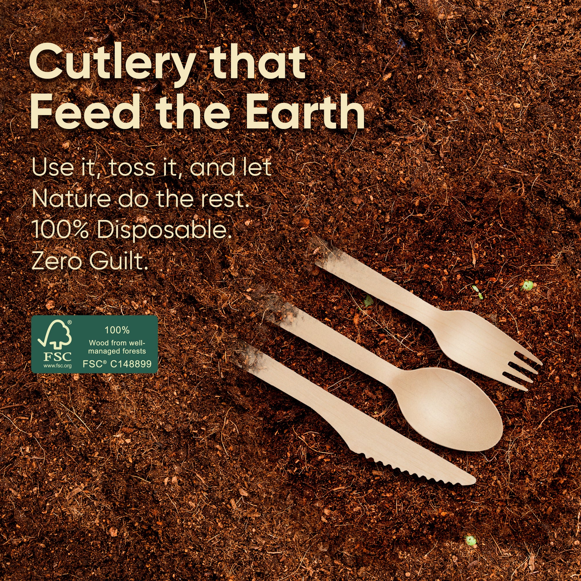 • Eco-Friendly Alternative: An environmentally responsible alternative to plastic and corn-based disposable utensils. These biodegradable wooden utensils can be disposed of along with food waste where permitted.