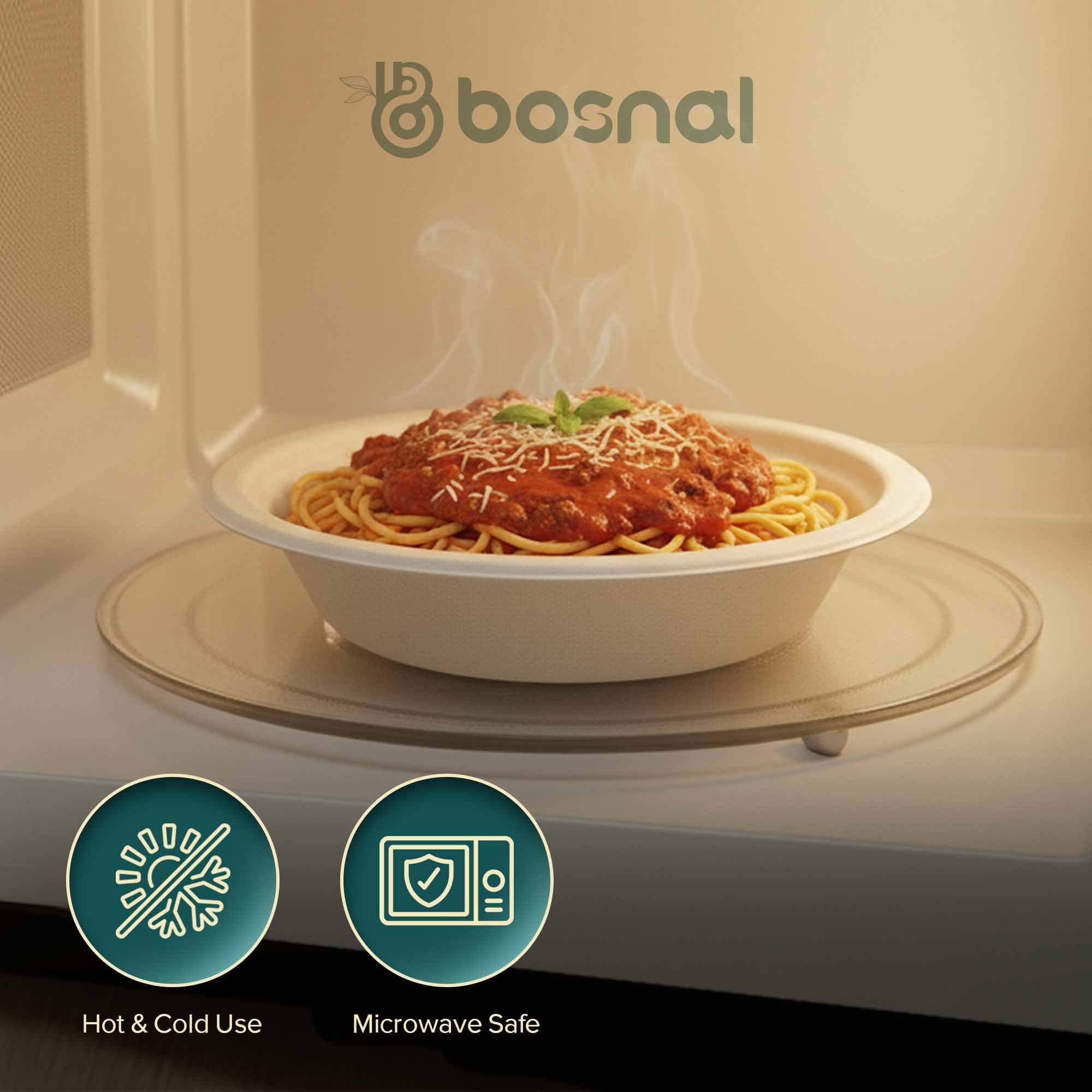 Our bowls are made from reclaimed sugarcane pulp, turning agricultural waste into strong, versatile, and stylish disposable bowls. After use, they naturally decompose into nutrient-rich soil, completing a sustainable cycle and reducing environmental impact. Reliable Performance for Any Meal From hot soups and curries to chilled salads and desserts, these bowls handle a variety of dishes without losing shape or leaking. Microwave safe and BPA-free, BOSNAL bowls provide safe, eco-friendly dining anytime.