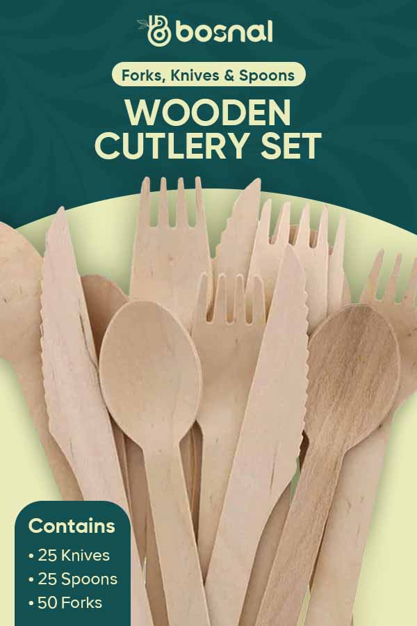 Bosnal – Wooden Disposable Cutlery Set, 6.5 inch, 100 Pcs